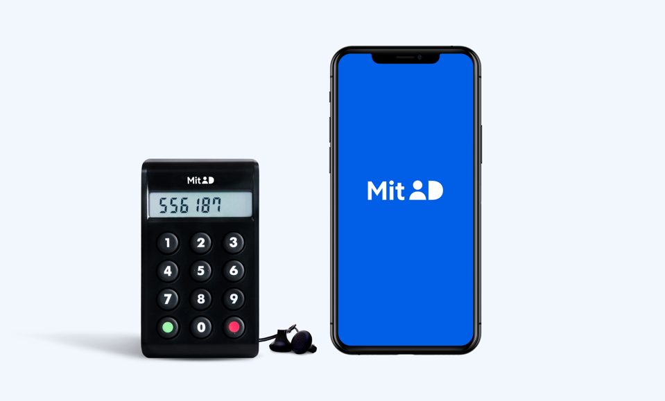 MitID kodeoplæseren er et elektronisk apparat, der fungerer som er et alternativ til MitID som app. Kodeoplæseren ligner en lommeregner og er særlig velegnet til personer med nedsat syn. Den viser og læser en engangskode højt, som du bruger til at logge på eller godkende med MitID.